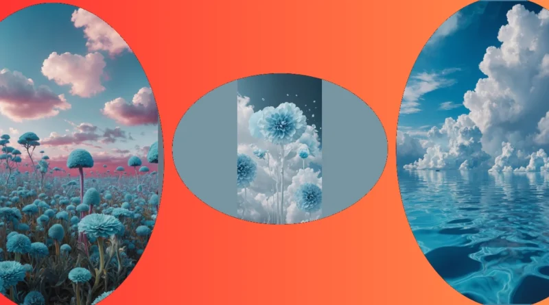 Step into a world where flowers decided they were just too cool for green and went all out blue! This isn’t your average backyard garden; it’s like a field trip to a planet where everything is gloriously unique. Check out those fluffy, pom-pom-like plants and the ones that look like giant, happy blue daisies, all stretching towards a sky painted with the most epic cotton candy pink clouds. It’s a landscape so whimsical, you half expect a friendly alien to pop out and offer you a blue berry muffin.