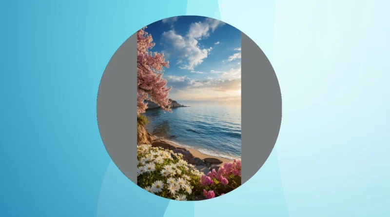 Not to be outdone by the sparkling sea, the flowers in this picture are seriously stealing the show. You’ve got fluffy pink blossoms practically waving hello from the tree, looking like they’re trying to photobomb the ocean view. Then, down by the sand, a whole squad of white daisies is soaking up the sun, probably planning their next Instagram post with the hashtag #SunnyAndThriving. This isn’t just a sunny place; it’s a supermodel sunny place, where every petal and wave is perfectly posed, making you wonder if even the rocks are secretly smiling.