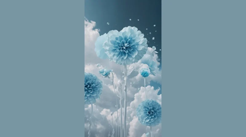 Get ready to stare because these aren’t your average garden flowers! We’ve got giant, fluffy blue blossoms chilling out in the sky, looking like they just crashed a cloud party. I mean, who needs solid ground when you can float around with your buddies, right? Their stems look like they’re made of delicious, drippy frosting, or maybe they’re just melting from being so ridiculously cool. And those little water bubbles? Probably just cosmic champagne for a sky-high toast to being awesome. It’s definitely a sight that makes you wonder what kind of alien bees pollinate these beauties.