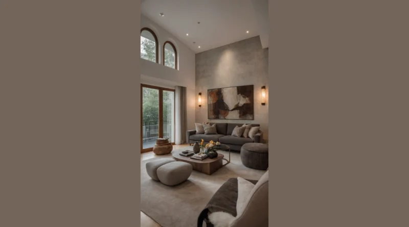 This living room looks like it’s ready for a magazine photoshoot, but in a super comfy, not-too-stiff way! With those sky-high ceilings and big, arch-shaped windows, it practically beams with natural light, making the whole place feel huge and airy – perfect for when you need to escape into a book or just chill without feeling cooped up. That giant sofa, piled high with fluffy pillows, seriously invites you to sink right in for a marathon of your favorite shows, proving that “modern living” can be totally snuggly too.
