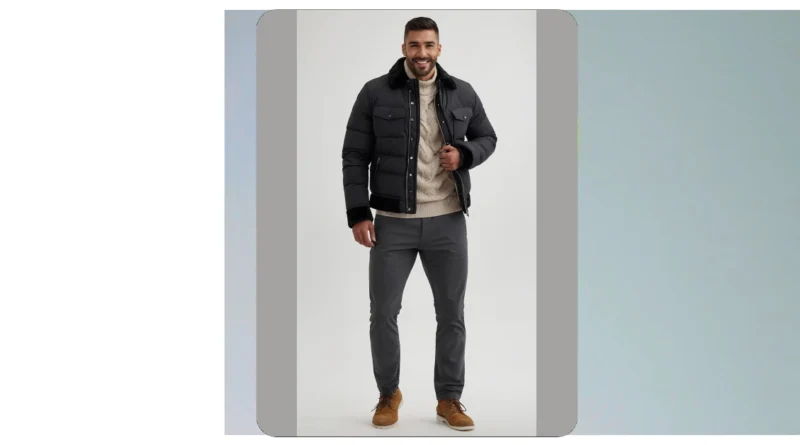 When winter hits and it feels like your nose might just break off from the cold, getting dressed can feel like a mission. You want to stay warm, but let’s be real, nobody wants to look like they’re wearing their entire duvet. That’s why this guy nailed it with his outfit! He’s rocking a puffer jacket that probably feels like a giant hug, complete with a cozy fur collar that says, “I’m warm, but I’m also ready for a photoshoot.” And check out that cream cable-knit sweater underneath – it’s like a warm hug for your torso, keeping the chill out without making him look like a giant marshmallow.
