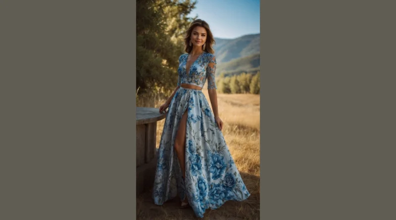 This dress is basically screaming, “I woke up like this, fabulous!” It’s not just a boho maxi dress; it’s a whole mood. With those stunning blue flowers blooming all over, you’ll look like you just floated out of a dream or a super fancy garden party. That high slit? It’s not just for showing off your legs; it’s for dramatic entrances, making sure you don’t trip over imaginary obstacles, or maybe even escaping quickly if someone brings out the broccoli dip. You’ll feel ready for any adventure, from a fancy picnic to being the star of your own outdoor music video.
