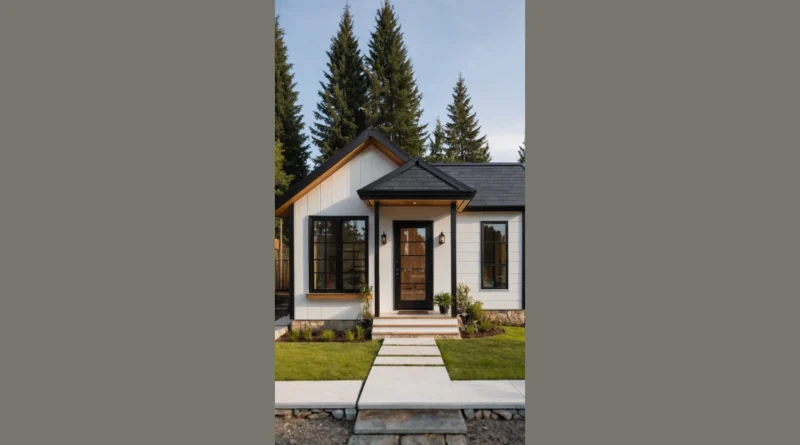 This cute little house looks like it’s ready for an owner who never loses their keys because, let’s be real, how far could they even go in there? It’s got that super modern vibe with the crisp white siding and cool black trim, looking sharp enough to be on a magazine cover. With those tall, majestic trees towering behind it, you’d feel like you’re living in your own secret forest hideaway, even if your entire living room is just a hop, skip, and a jump from your front door. It’s like a stylish dollhouse you actually get to live in!