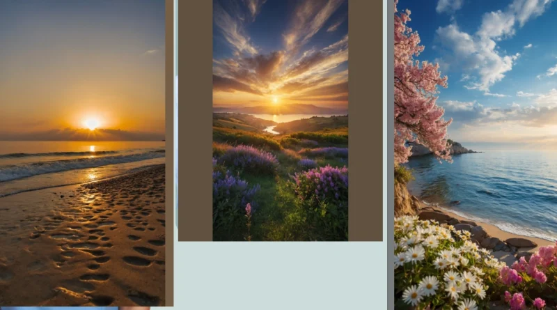 Not to be outdone by the sparkling sea, the flowers in this picture are seriously stealing the show. You’ve got fluffy pink blossoms practically waving hello from the tree, looking like they’re trying to photobomb the ocean view. Then, down by the sand, a whole squad of white daisies is soaking up the sun, probably planning their next Instagram post with the hashtag #SunnyAndThriving. This isn’t just a sunny place; it’s a supermodel sunny place, where every petal and wave is perfectly posed, making you wonder if even the rocks are secretly smiling.